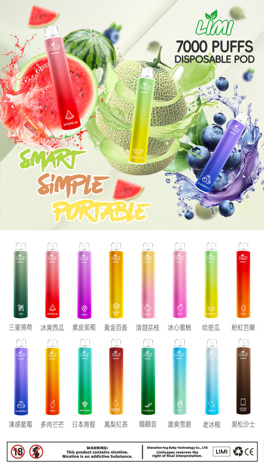 新品Limi7000口拋棄式 ILIA哩亞同廠生產 煙油容量更高 口味更優化 LIMI一次性7000Puffs便攜式圓管電子煙-VAKA糖果雲煙館