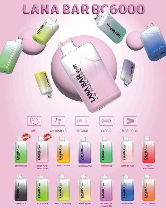 【LANA BAR BC 6000口】大容量新款拋棄式6000口-超涼款一次性電子煙-VAKA糖果雲煙館